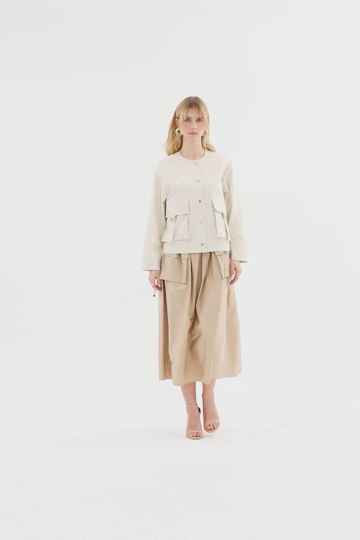 Beige Drawstring-Waist Jacket