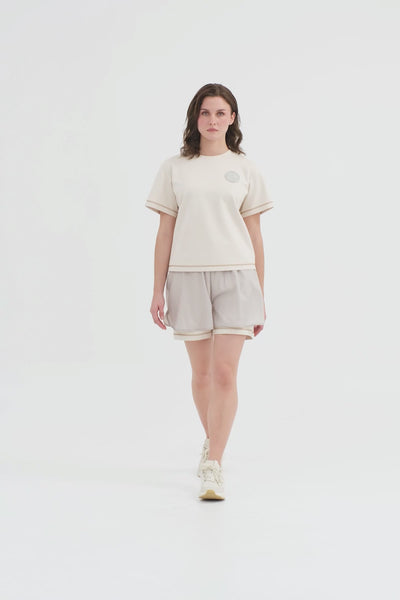 Beige Logo Label Detailed Topstitched T-Shirt