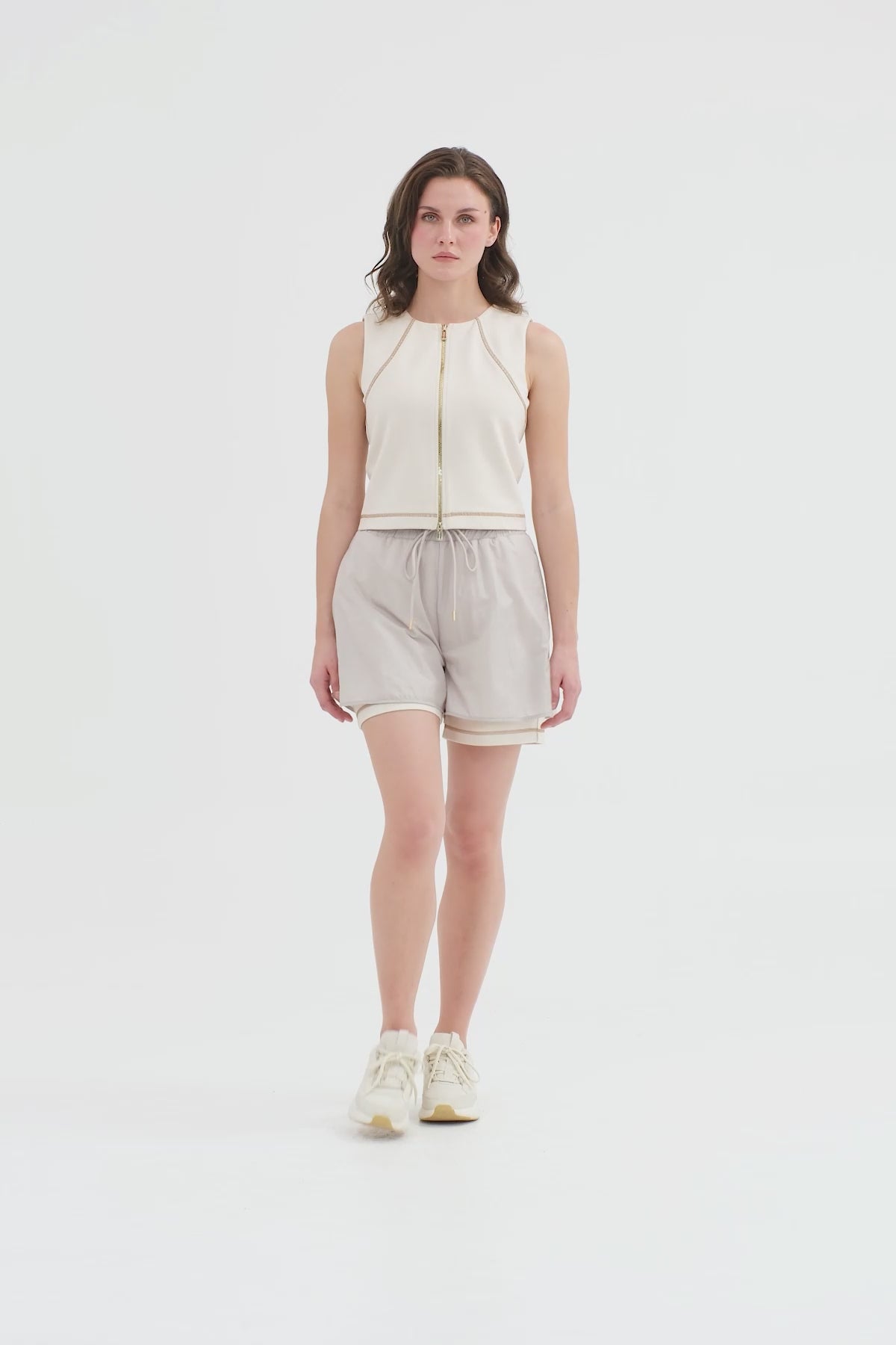 Beıge Logo Label Detailed Topstitched Zip Blouse