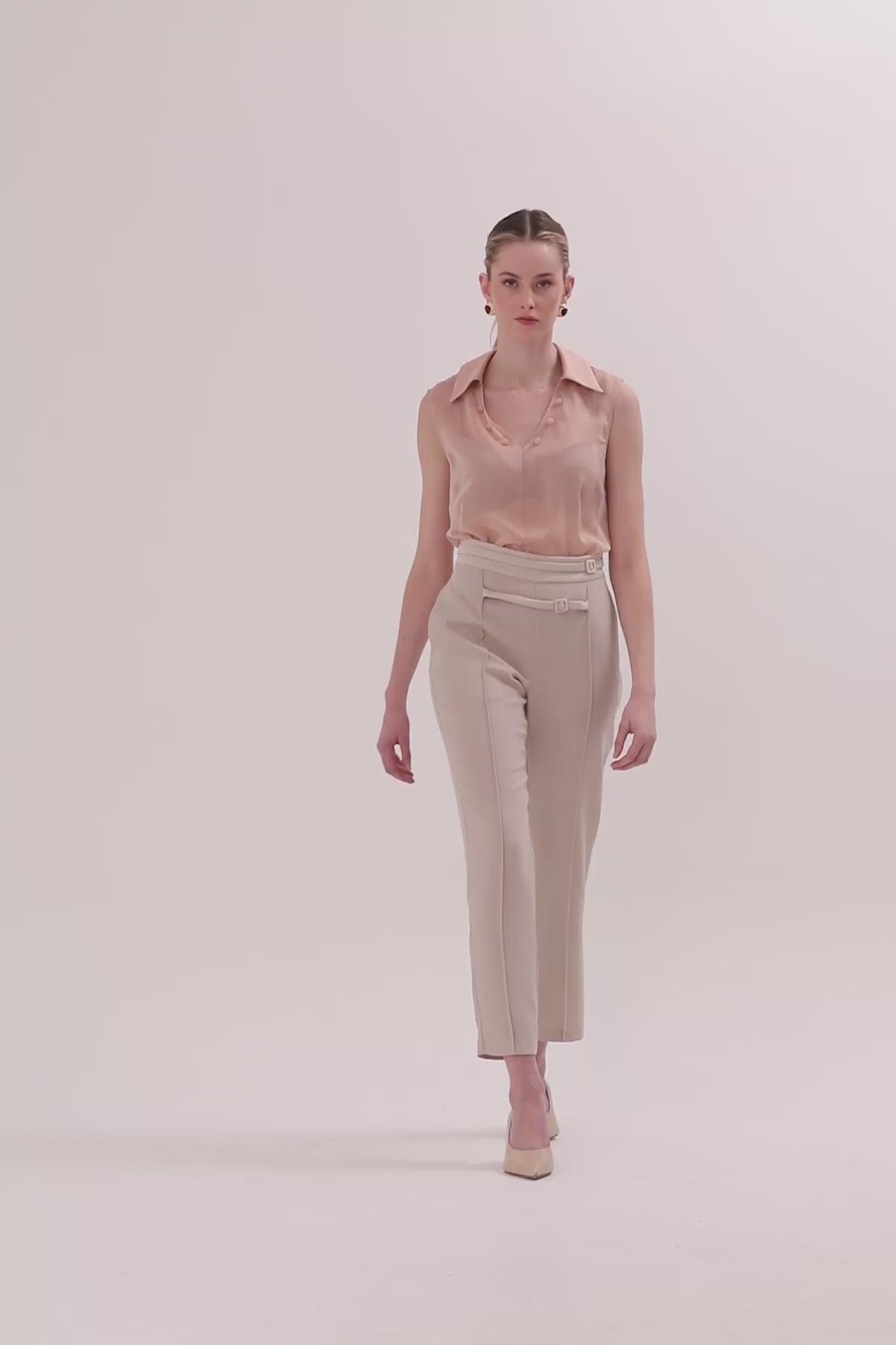 Beige Trousers with Belt Detail