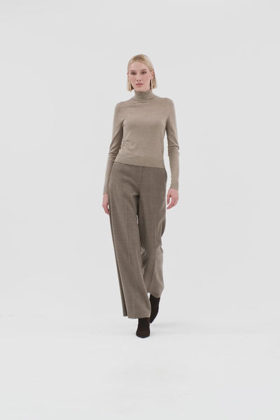 Beige Turtleneck Knit Sweater