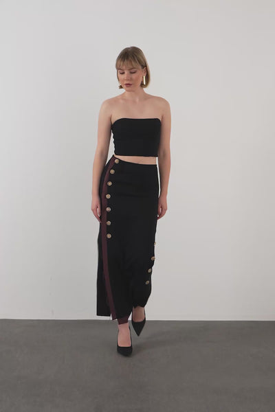 Black Button-Front Maxi Skirt