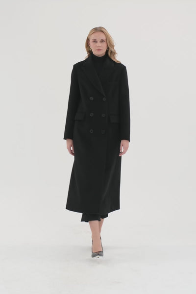 Black Buttoned Coat with Back Slit