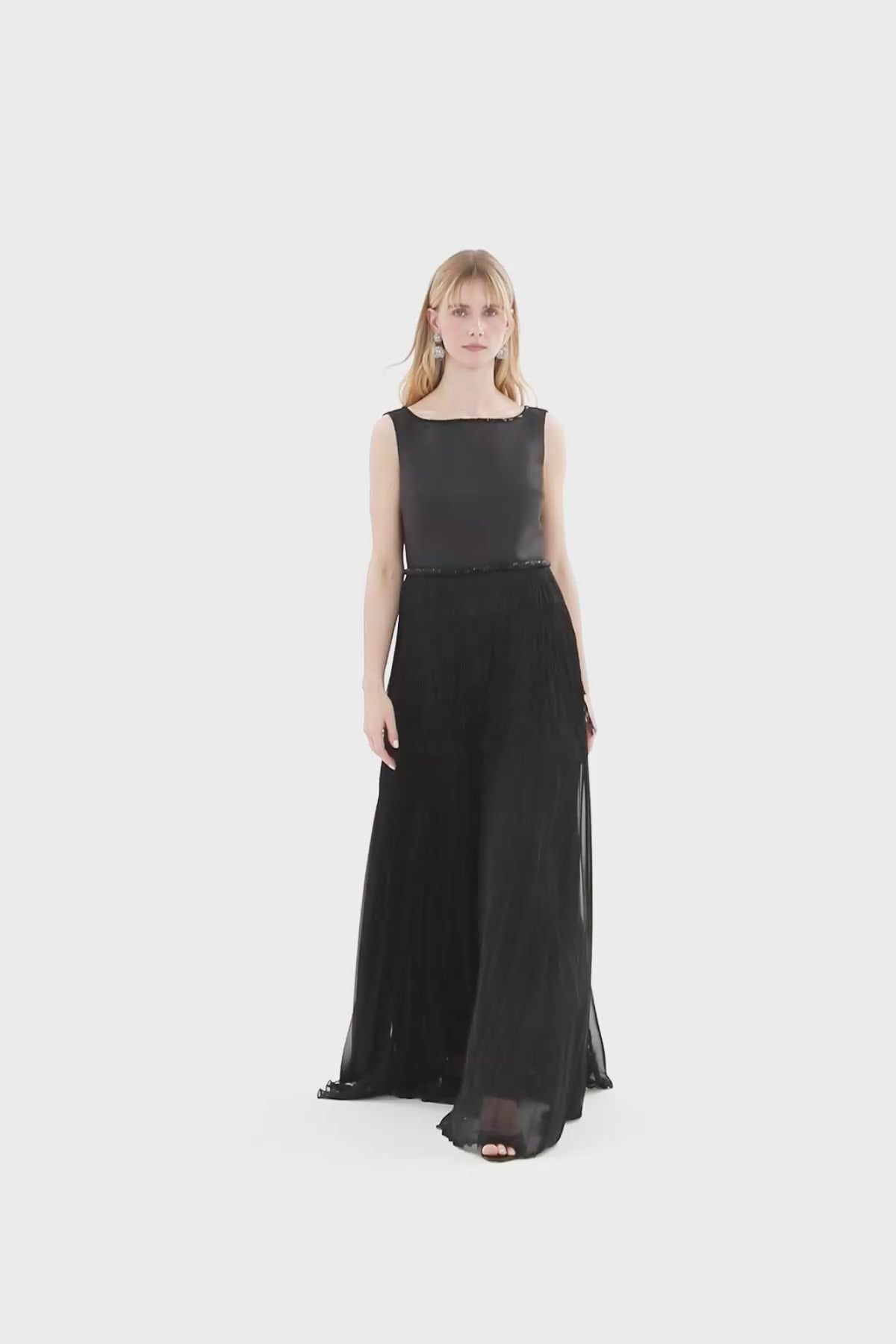 Black Embroidered-Waist Maxi Dress