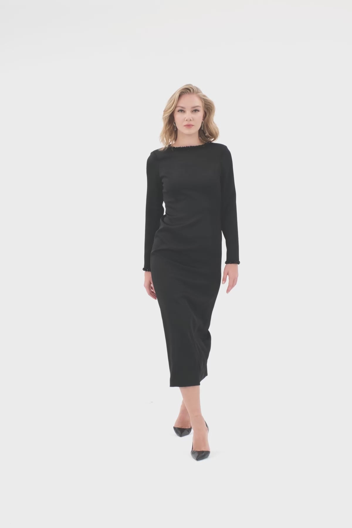 Black Midi Dress with Collar Detail
