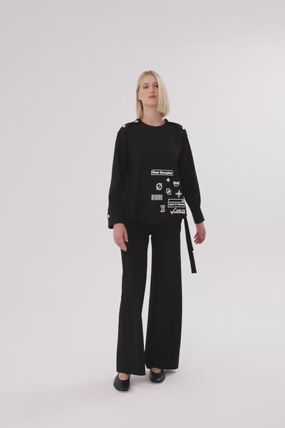 Black Printed Long-Sleeve Sweatshirt