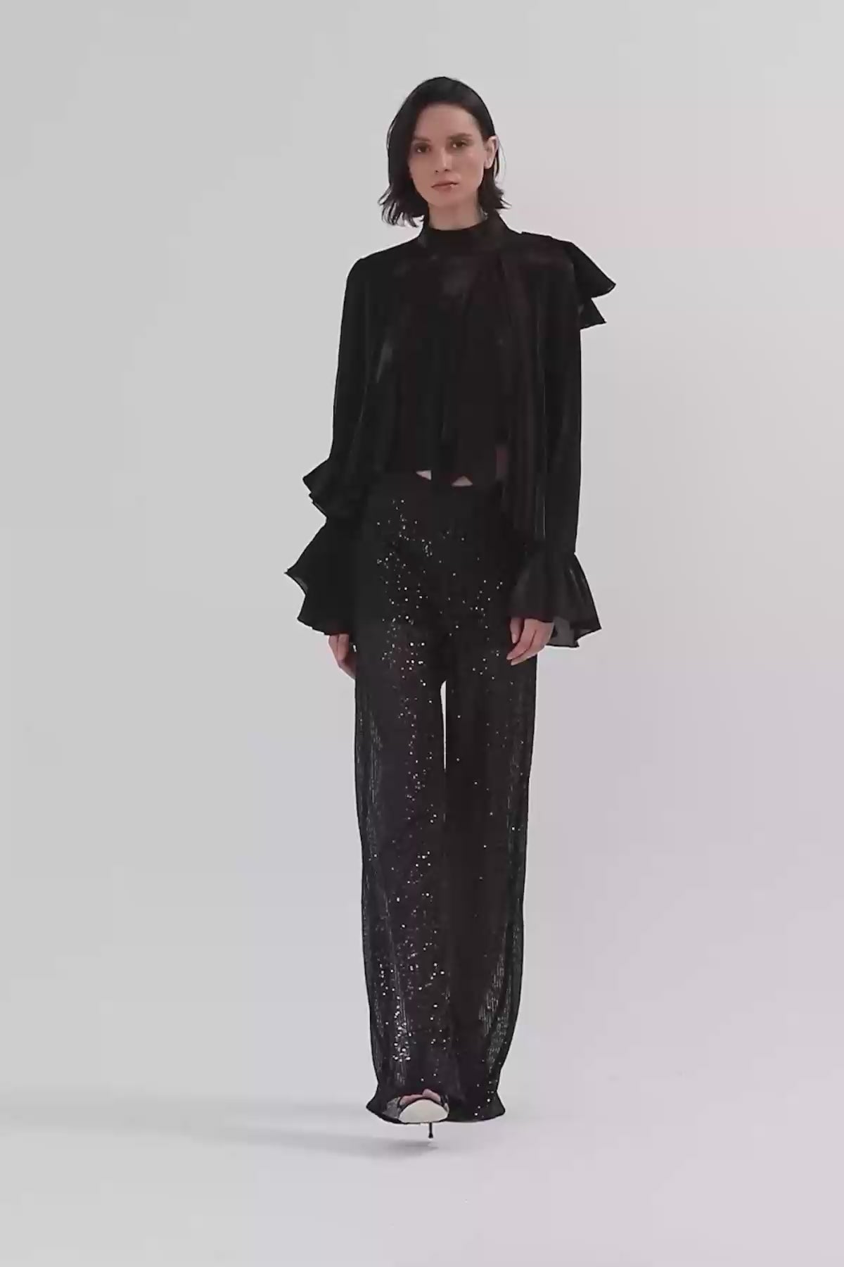 Black Ruffle Detail Blouse