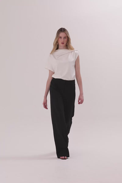 Black Wide-Leg Fabric Trousers
