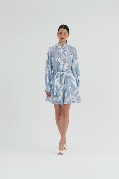 Blue Embroidered Ruffle Pattern Dress