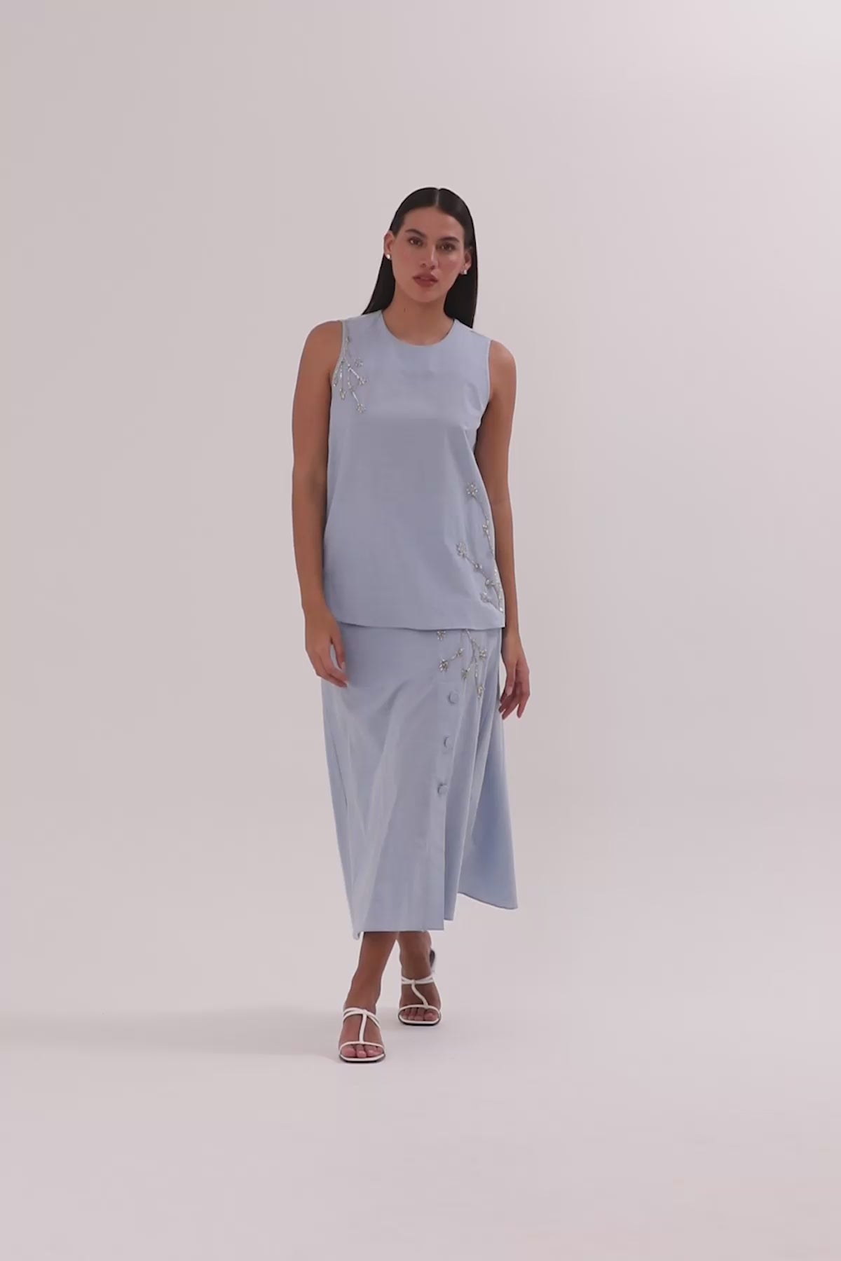 Blue Embroidered Sleeveless Blouse