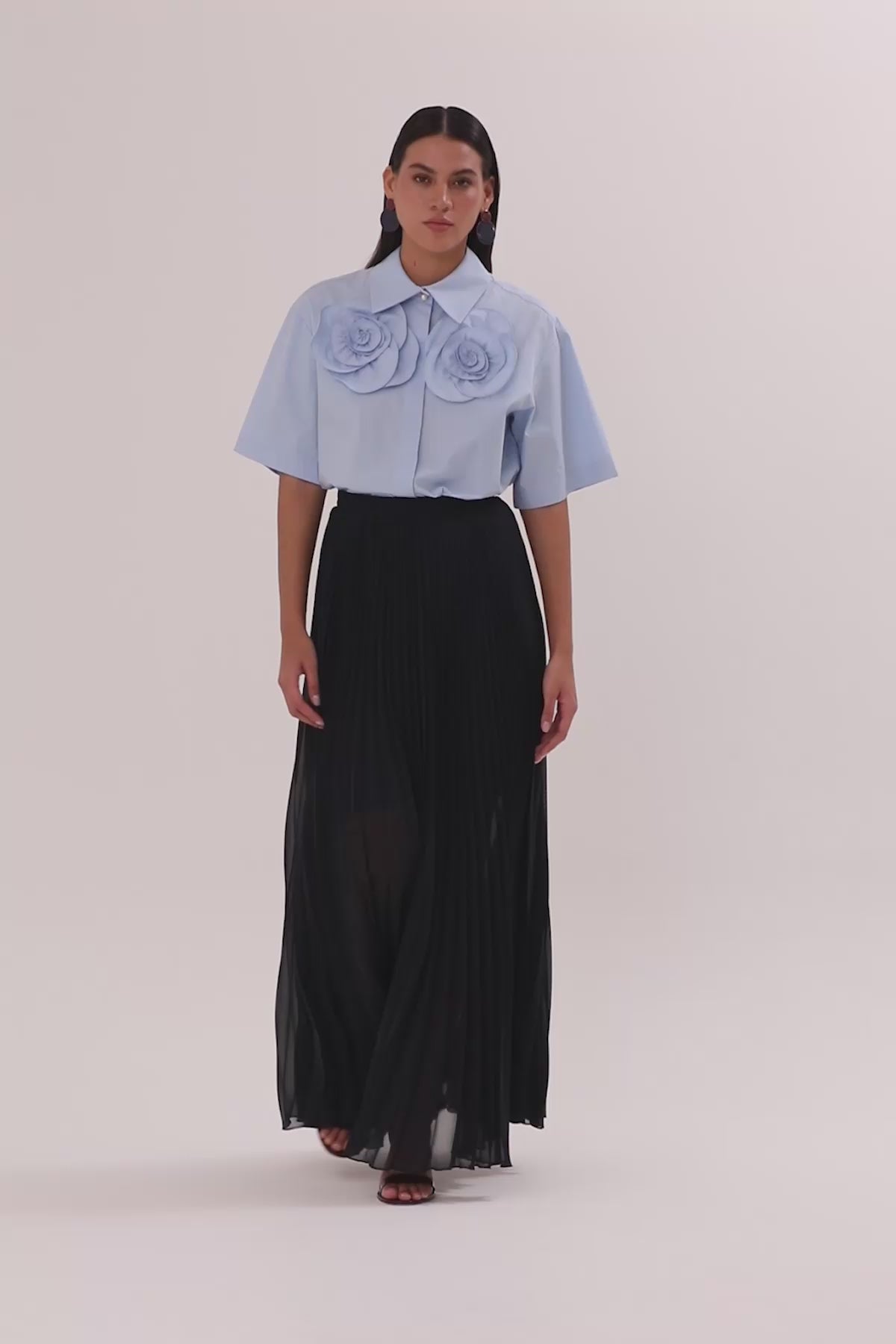 Blue Pleated Maxi Skirt