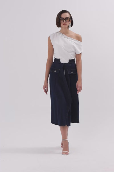 Blue Slit-Detail Midi Denim Skirt