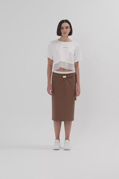 Brown Belted Midi Pencil Skirt