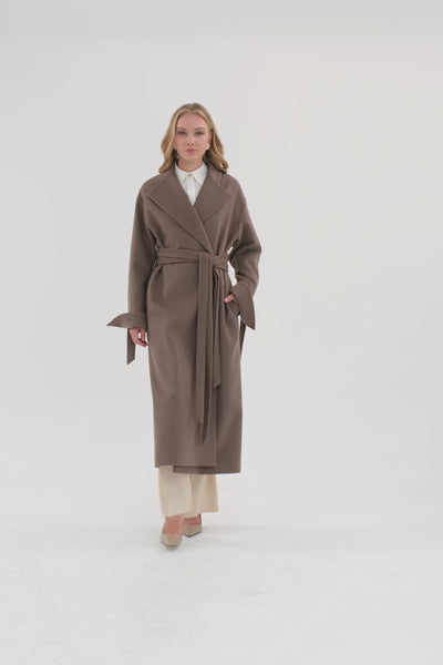 Brown Double-Belt Oversized Coat
