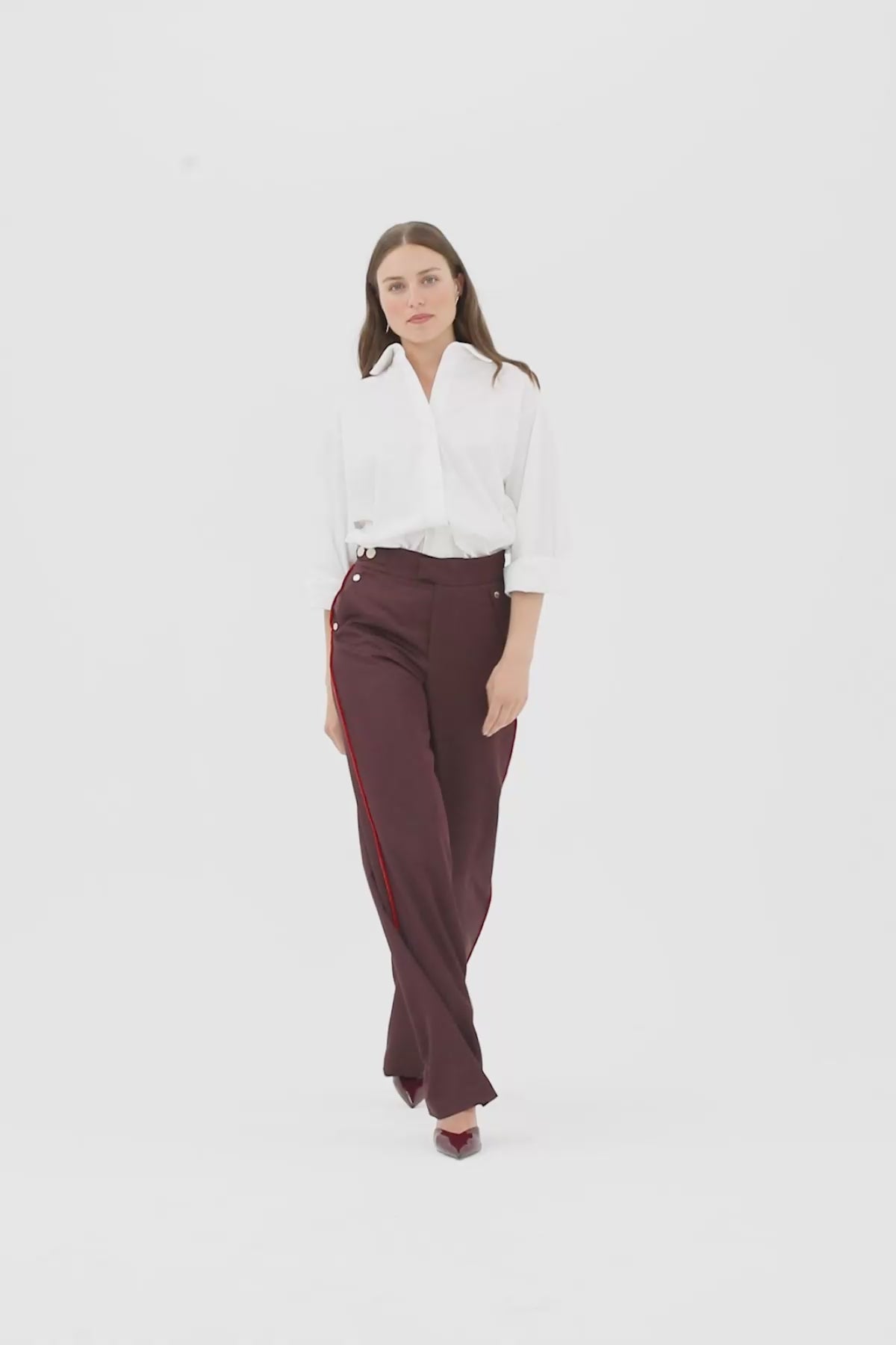 Burgundy Trousers with Button Accessories