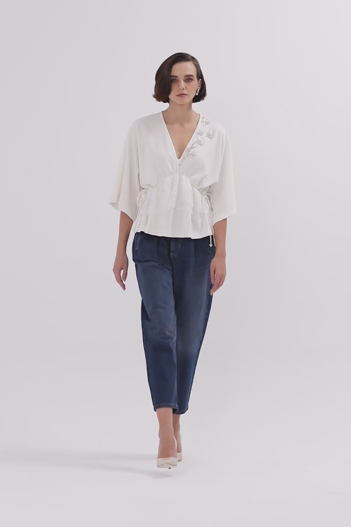 Ecru Beaded V-Neck Blouse