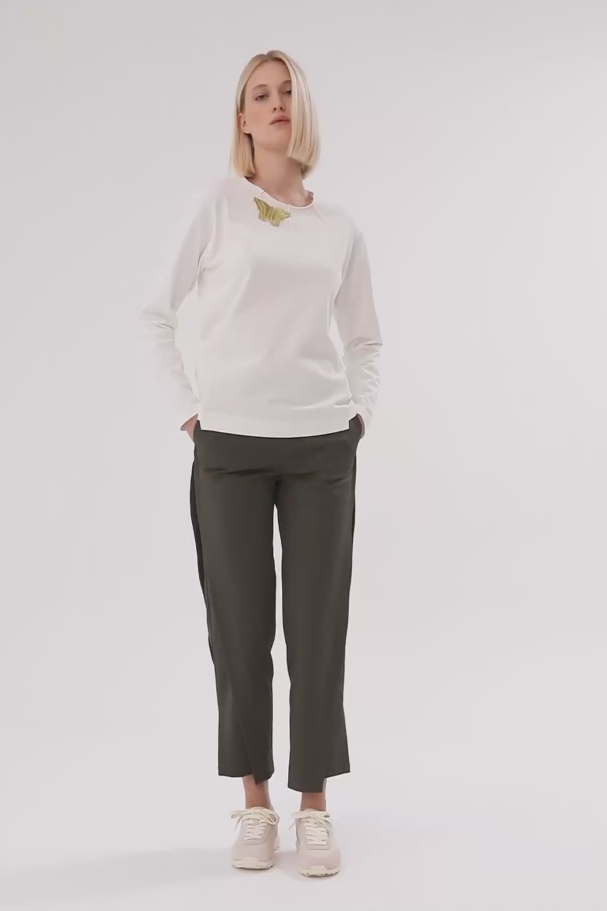 Ecru Butterfly Detail Long-Sleeve Blouse
