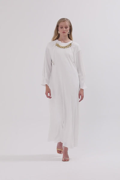 Ecru Chain-Collar Maxi Dress