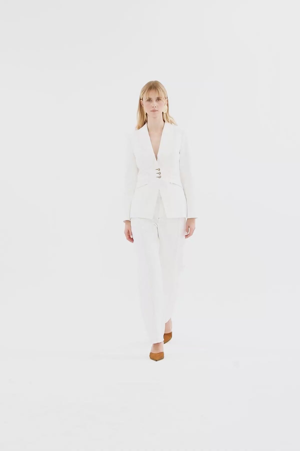 Ecru Double-Breasted Contrast-Stitch Jacket