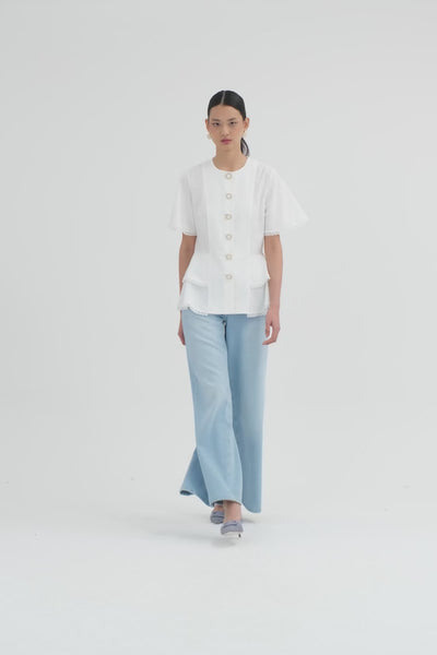 Ecru Flounce Button-Closure Blouse