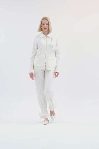 Ecru Jacket and Pants Sweatshirt Set