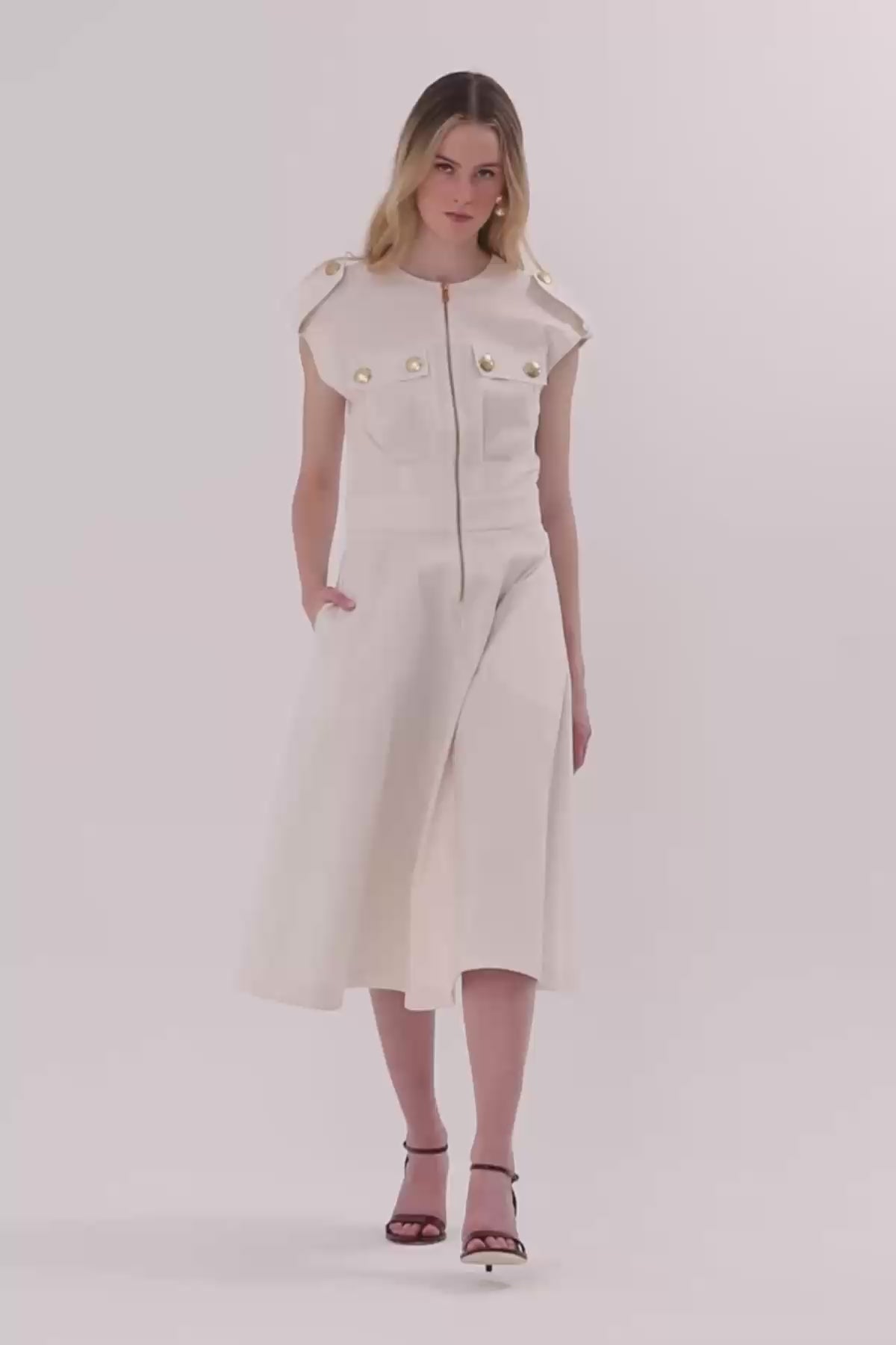 Ecru Midi Dress with Shoulder Epaulets