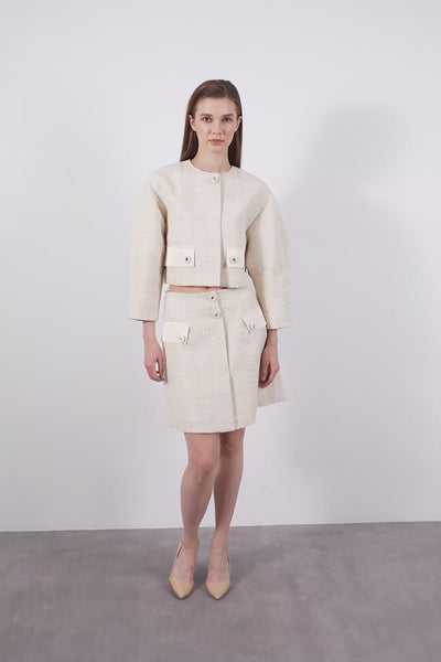 Ecru Mini Button Detail Skirt