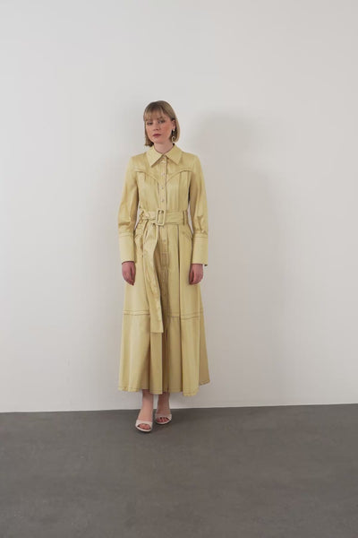 Ecru Sash-Detail Cotton Midi Dress