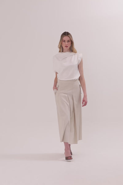 Ecru Sash-Detail Midi Skirt