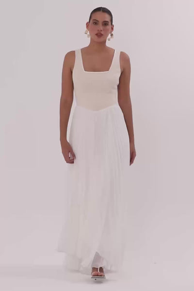 Ecru Skirted Asymmetrical Maxi Dress