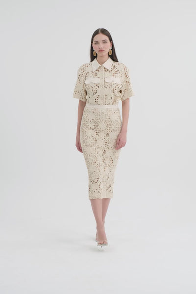 Ecru Slit Midi Pencil Skirt
