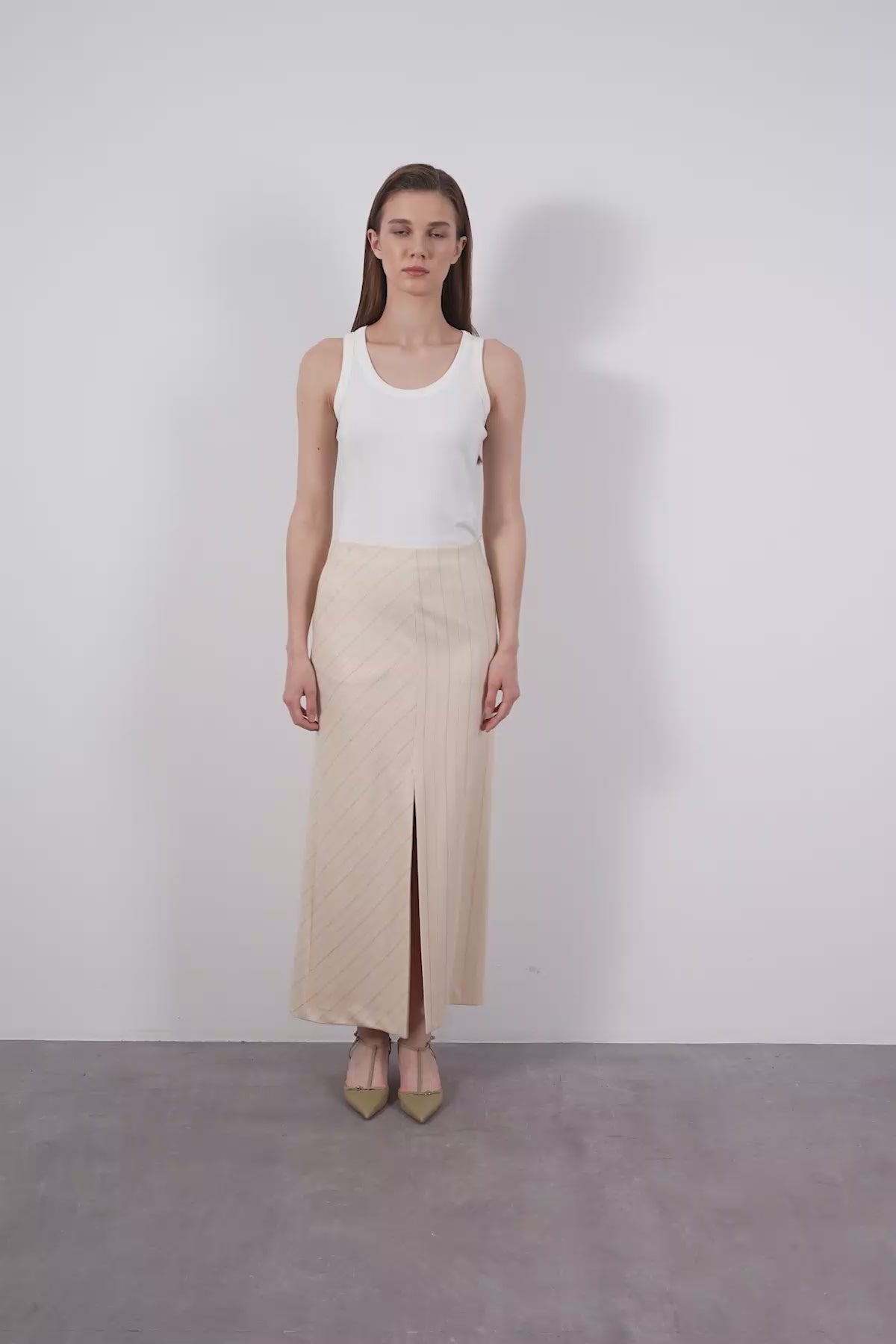 Ecru Striped Maxi Skirt