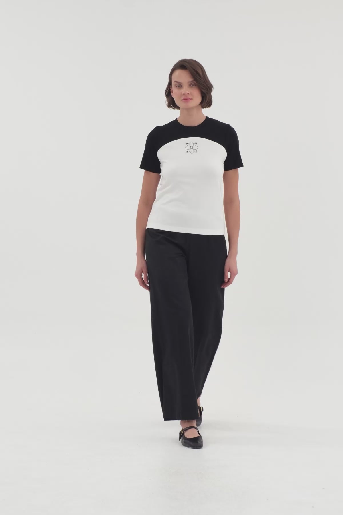 Ecru T-Shirt with Embroidery Details