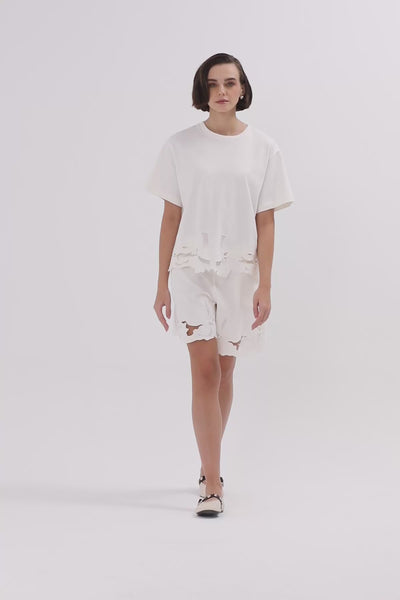 Ecru T-Shirt with Patterned Hem