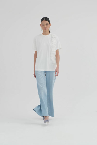 Ecru T-Shirt with Tulle Ribbon Accessory
