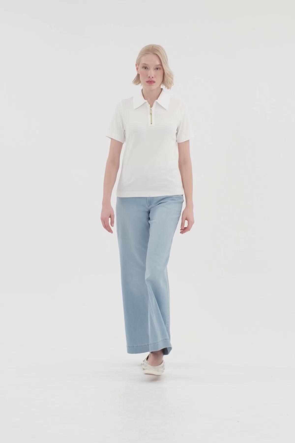 Ecru Zip-Front Short Sleeve Blouse