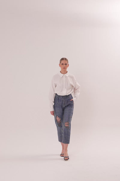 Faded Jacron Detailed Mom Jeans