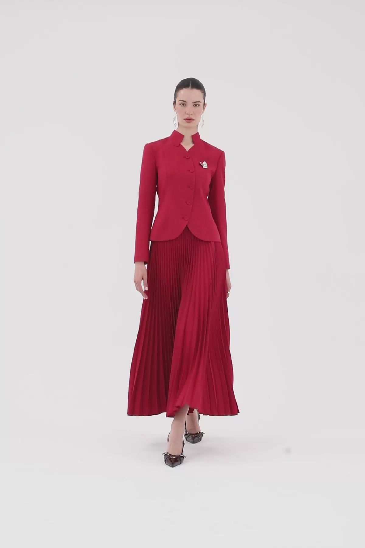 Green Short Jacket Suit with Brooch