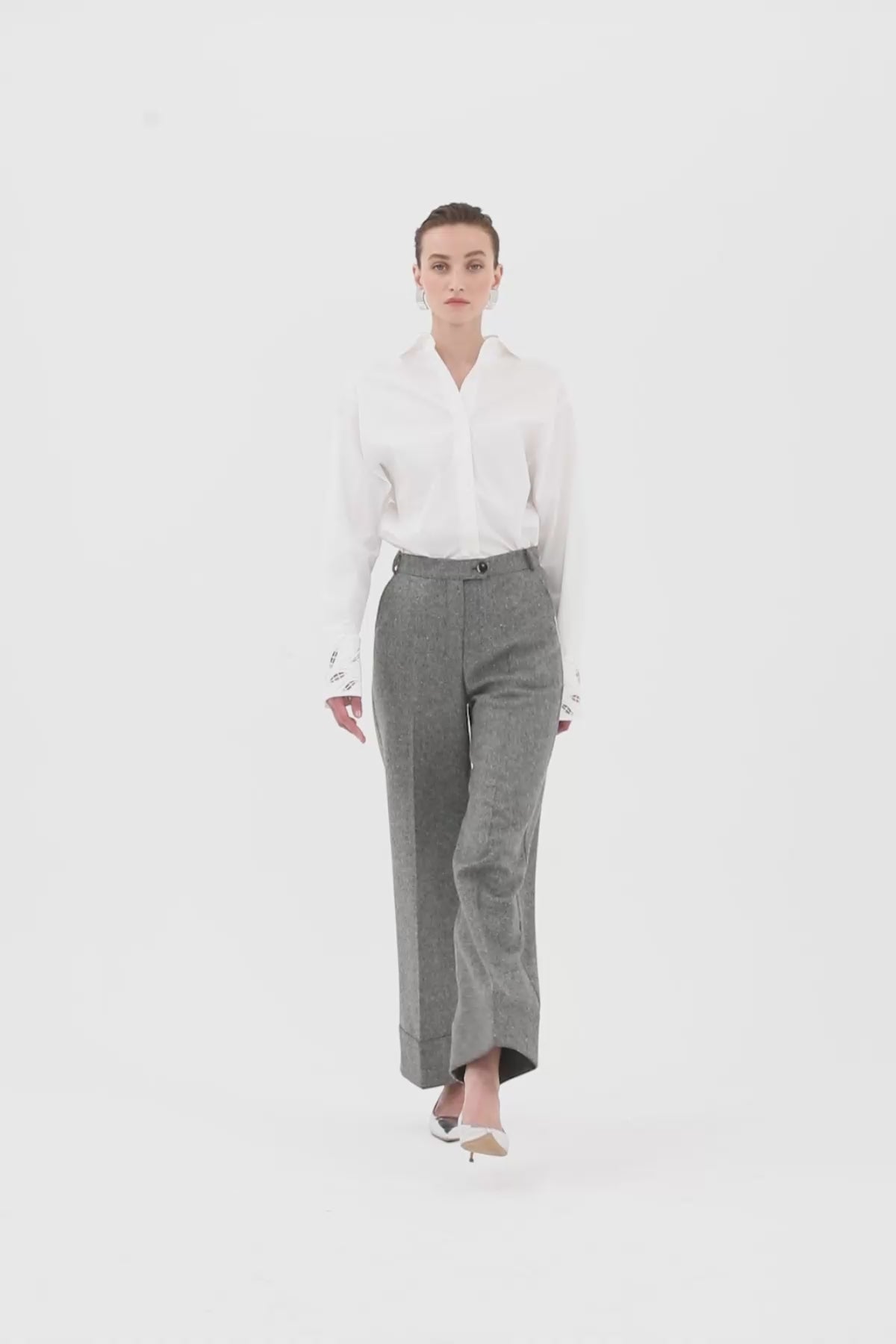 Grey High-Waisted Straight-Leg Trousers