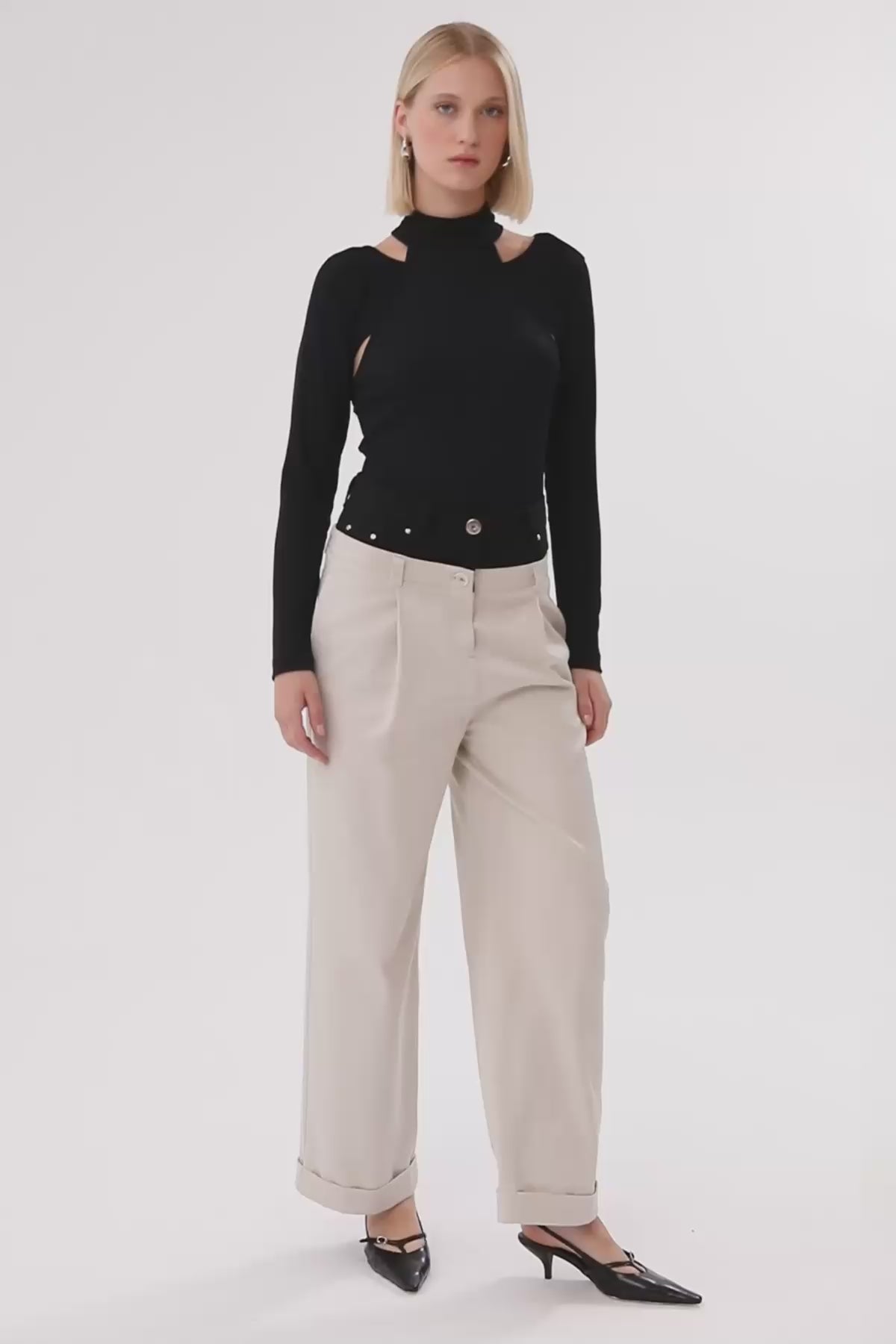 Laser-Detail Pleated Wide-Leg Pants