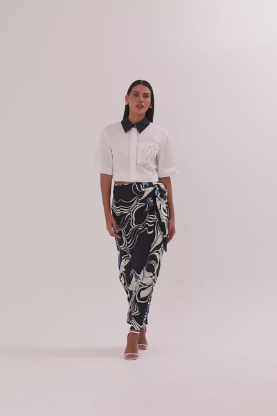 Navy Patterned Midi Skirt