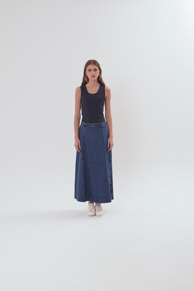 Navy Pocketed Maxi Denim Skirt