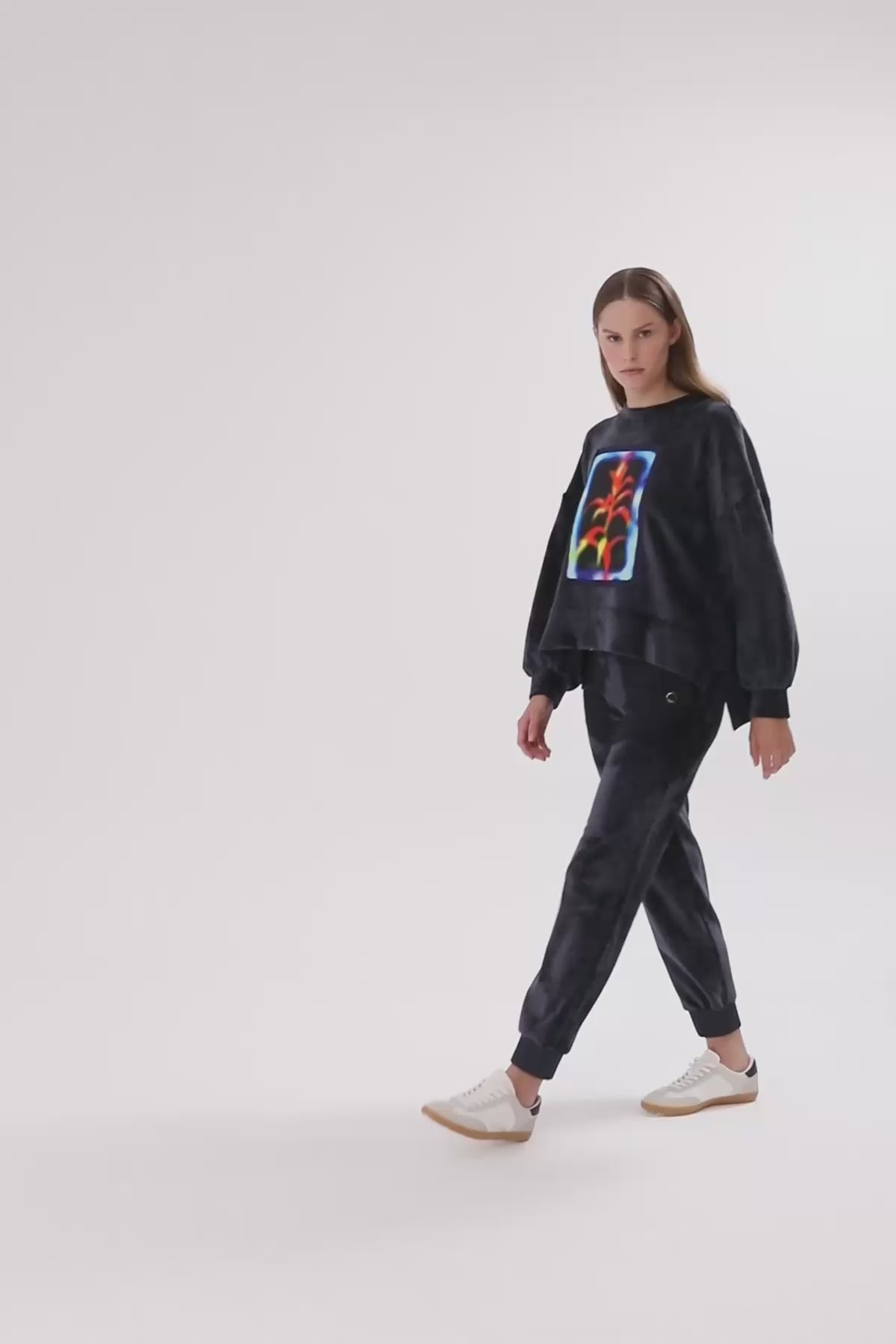 Navy Printed Velvet Sweatshirt