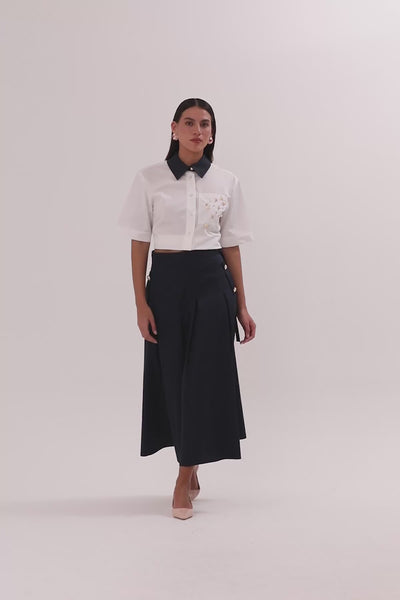 Navy Sash-Detail Midi Skirt