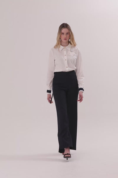 Navy Trousers with Slit Hem