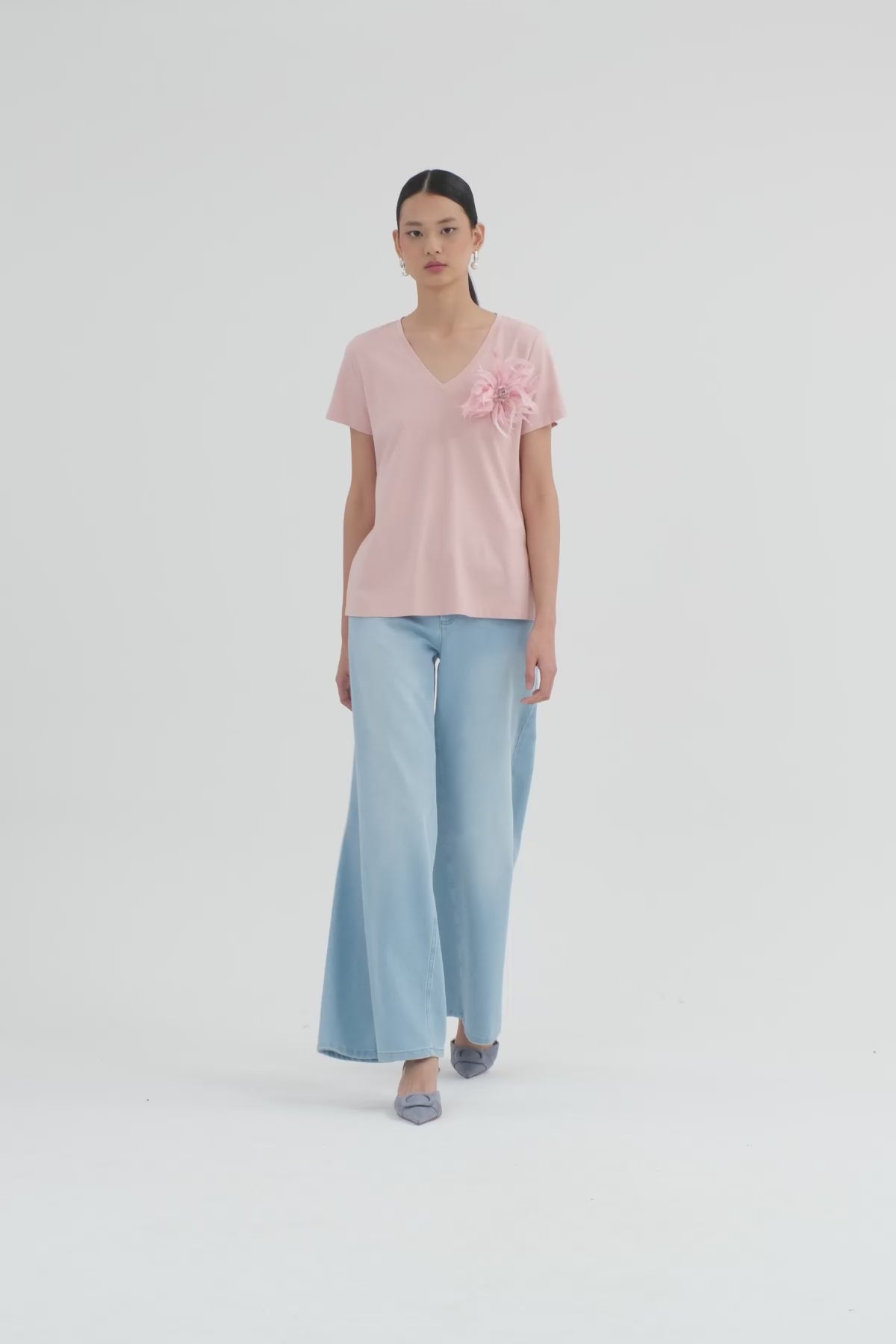 Pink T-Shirt with Beaded Brooch Accessory