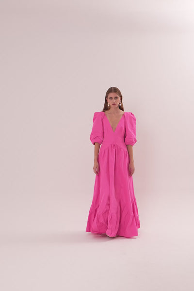 Pink V-Neck Maxi Dress