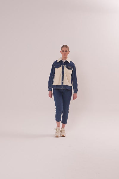 Plush-Detail Denim Jacket