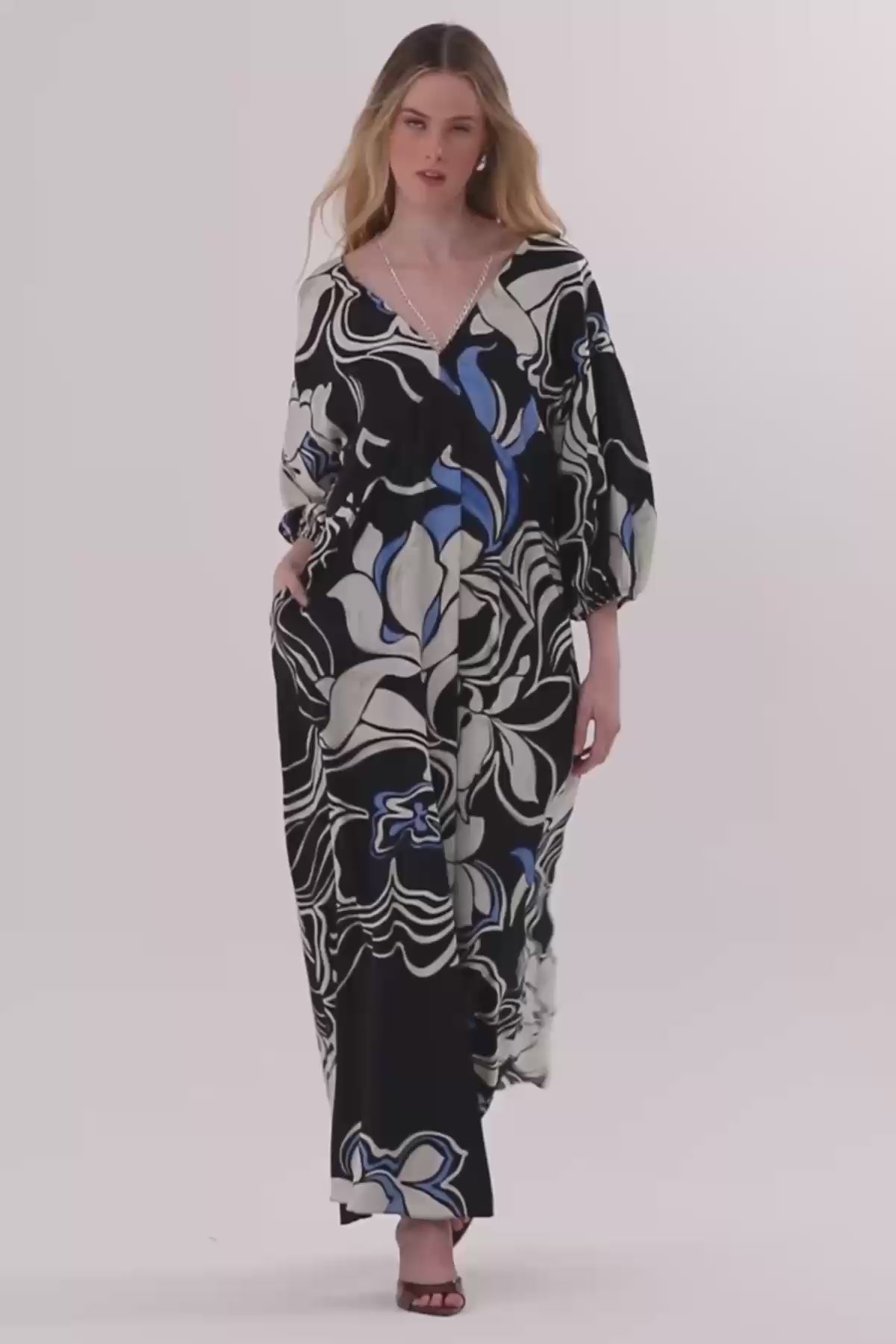 Printed Short-Sleeve Maxi Dress