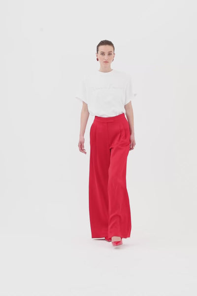 Red Trousers with Pleated Details